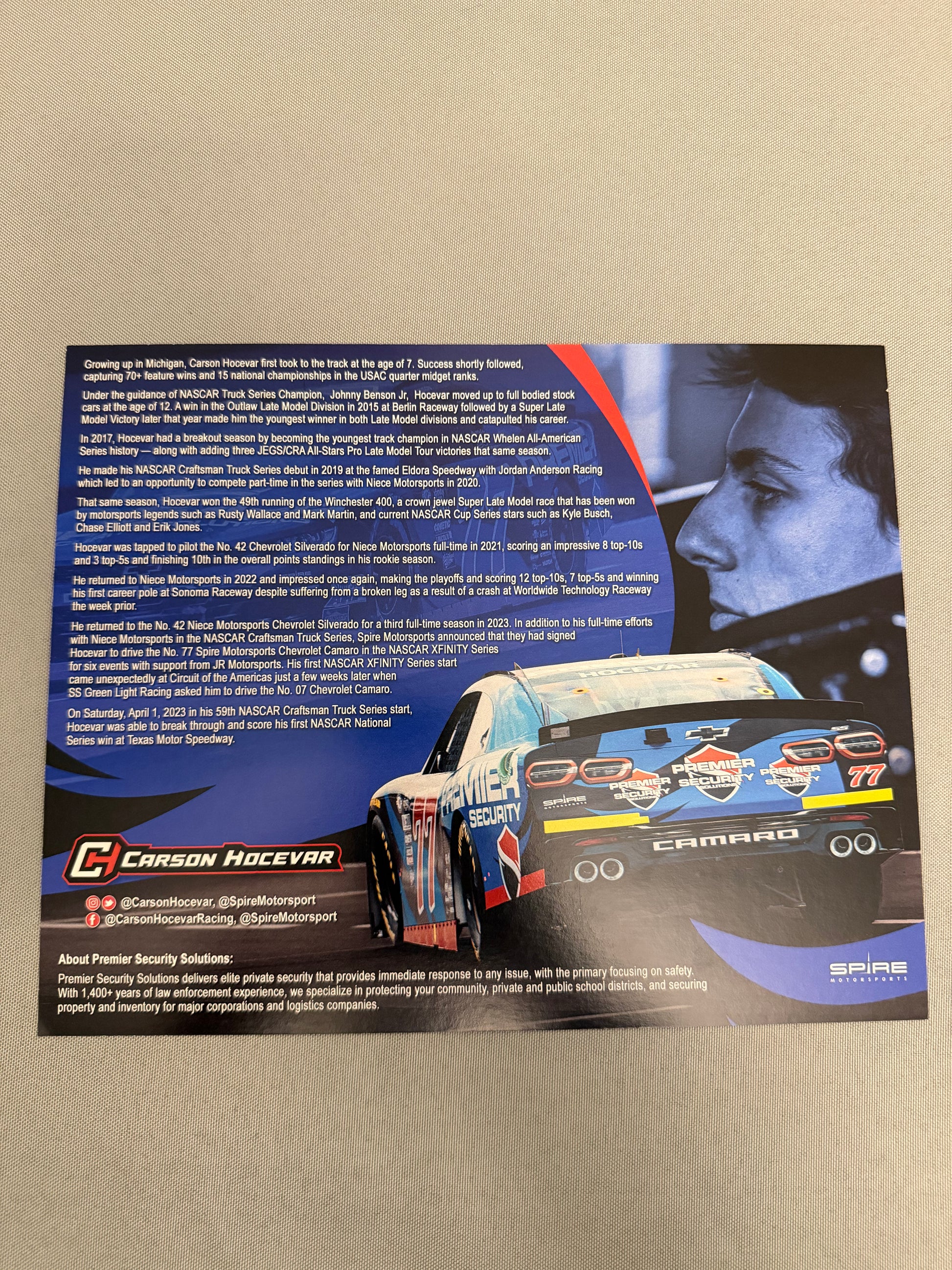 Carson Hocevar #77 2023 Premier Security Nascar Hero Card
