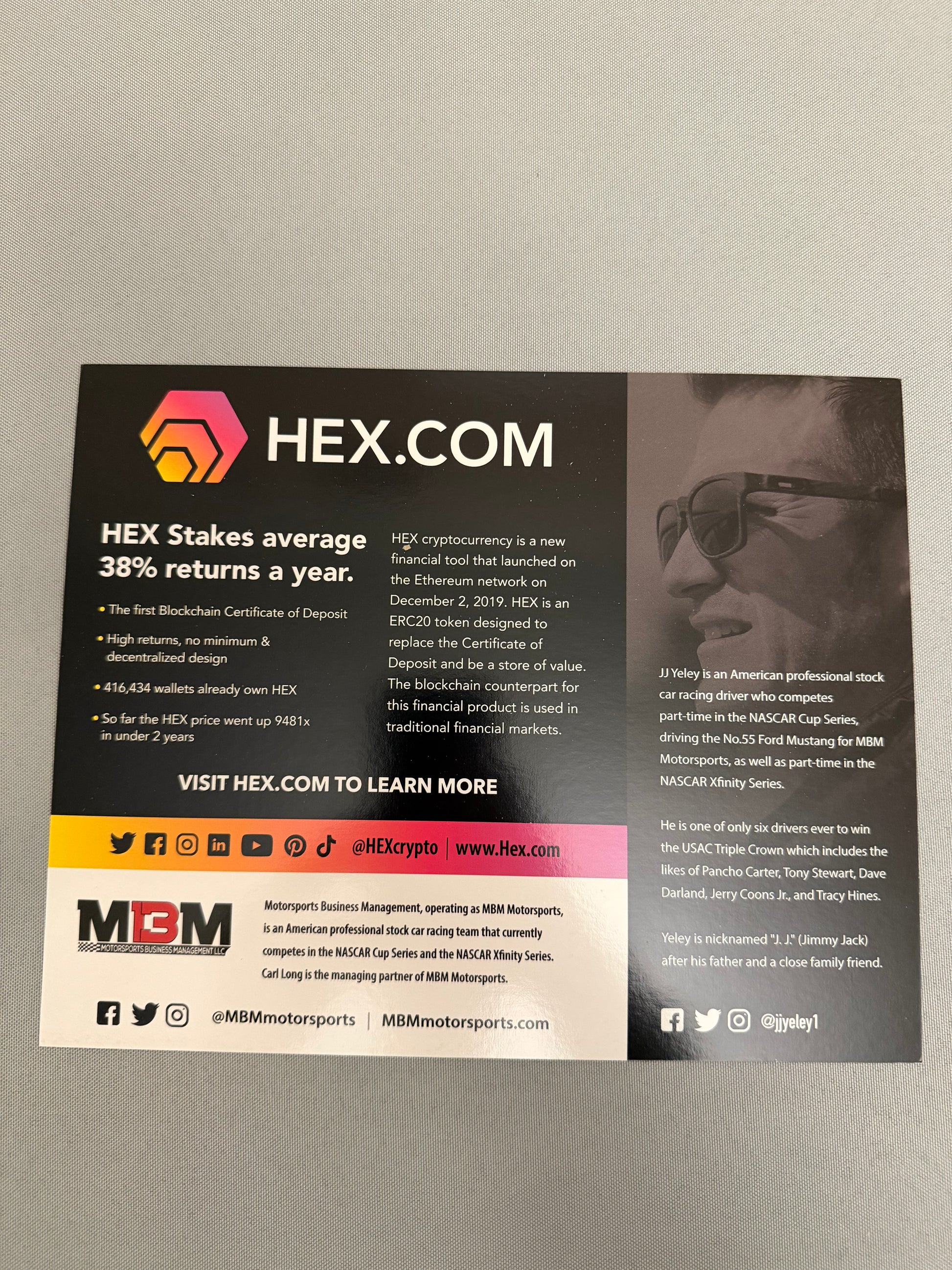 JJ Yeley #55 2022 Hex Nascar Hero Card