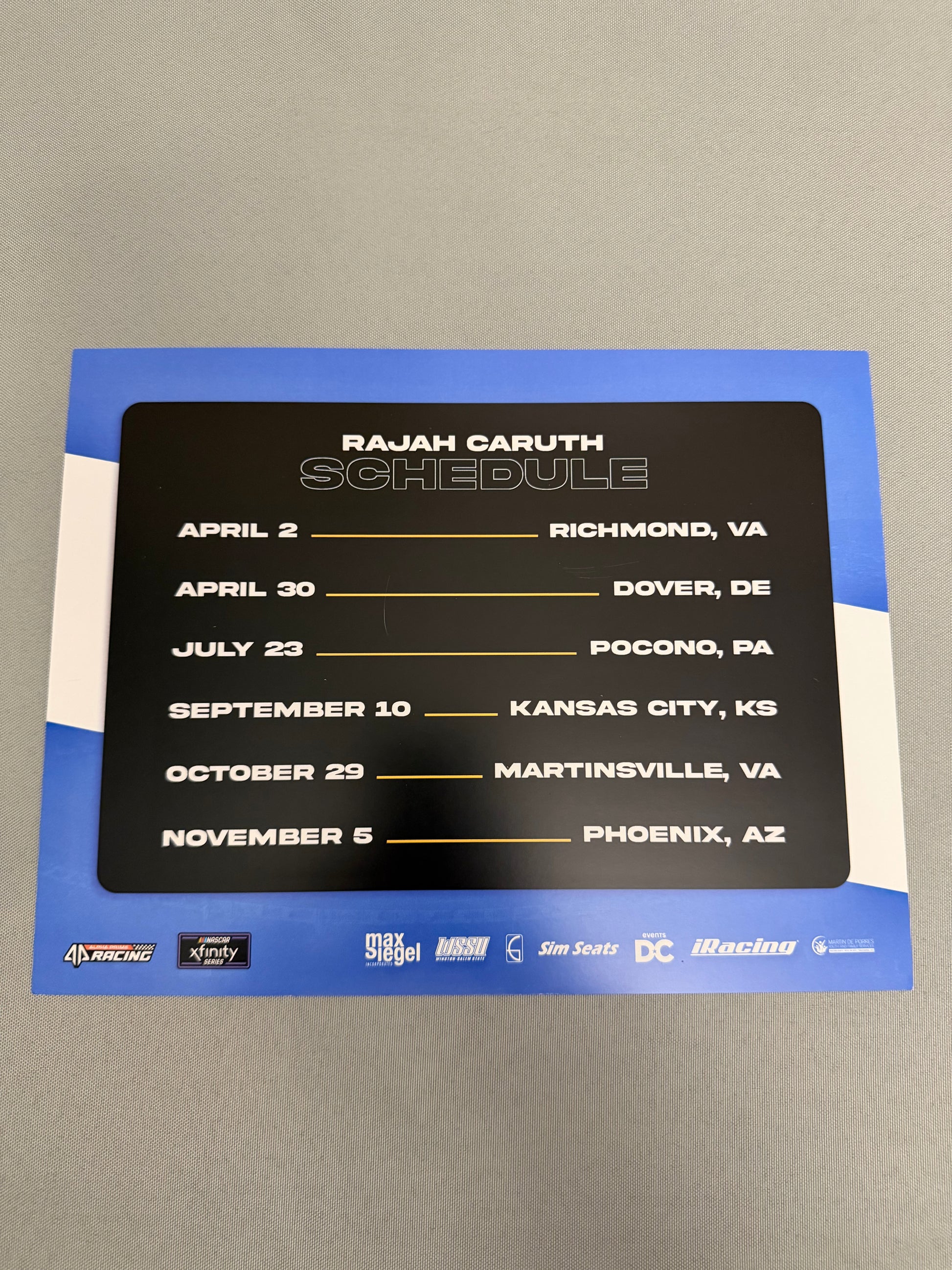 Rajah Caruth #44 2022 Virginia State University Nascar Hero Card