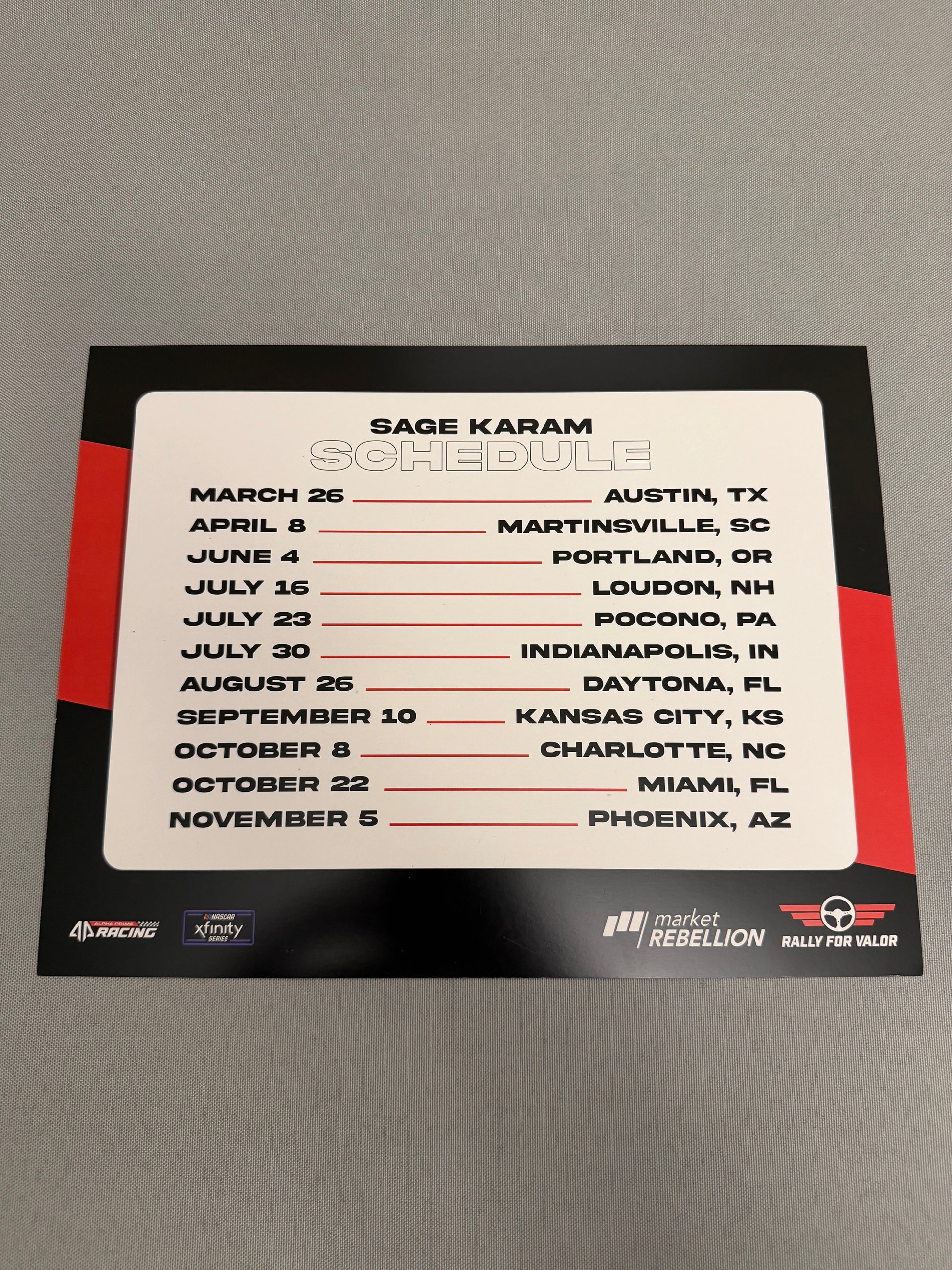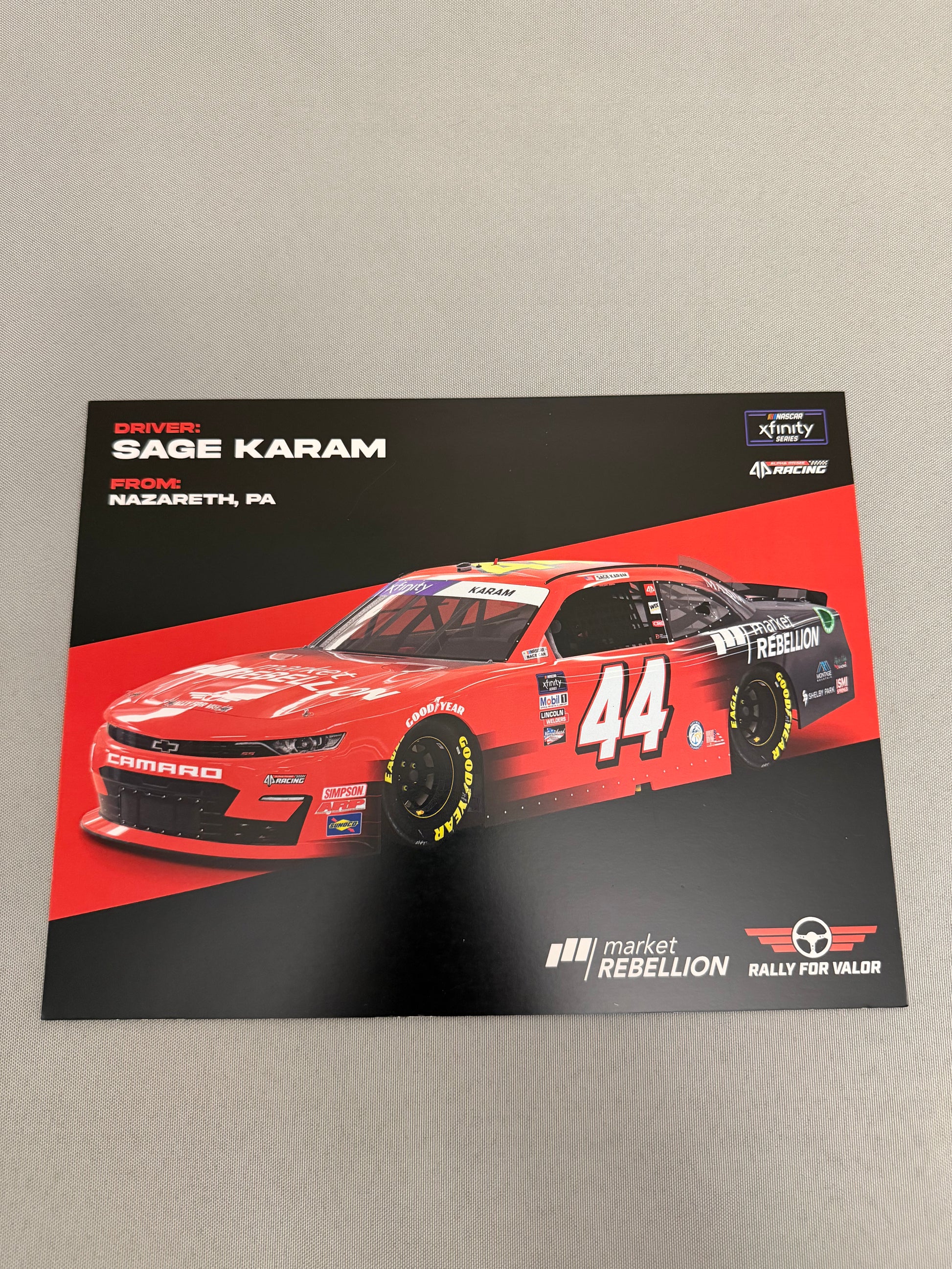 Sage Karam #44 2022 Market Rebellion Nascar Hero Card